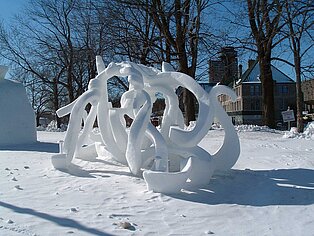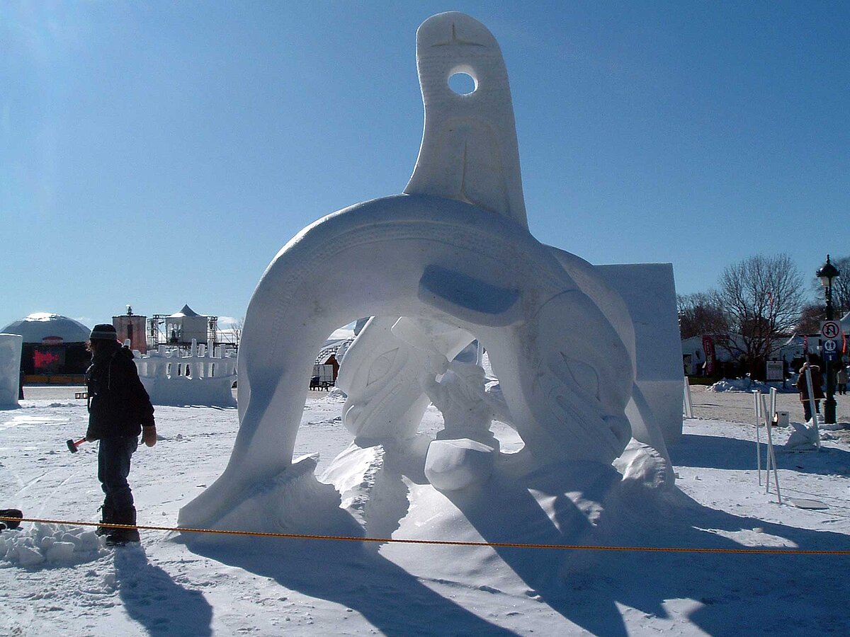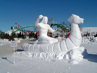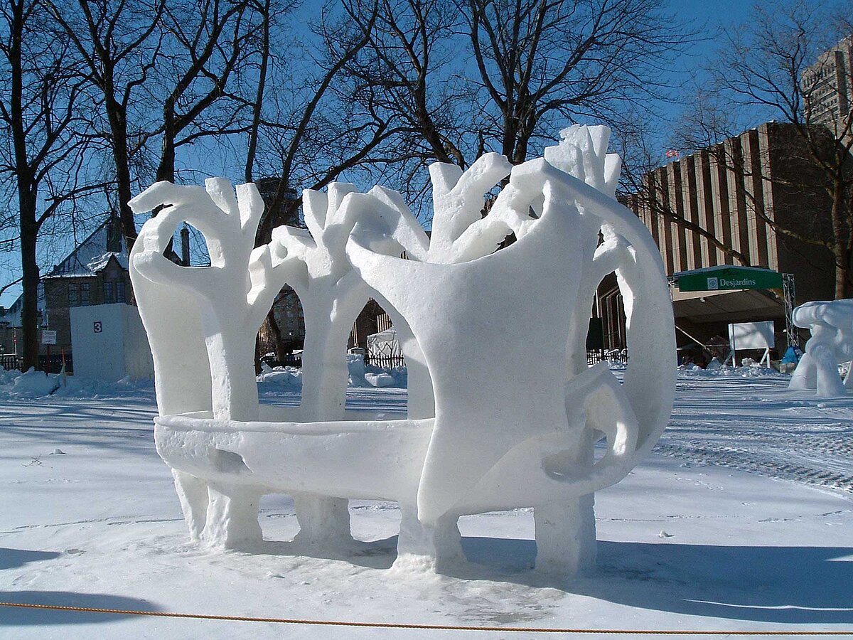 Après un bref exposé sur les Plaines par notre guide touristique préféré, monsieur Jean-Marc LOISELLE, en savourant un café-muffin pour nous requinquer, nous étions prêts à suivre notre guide Michel. Le circuit proposé nous permit d’apprécier les sculptures sur neige défiant les lois de la gravité tout en étant d’un esthétisme audacieux, de traverser le village du Carnaval et de parcourir le territoire réservé aux marcheurs, aux raquetteurs et aux skieurs. J’ai appris que plus de quinze kilomètres de pistes sont aménagées sur les Plaines pendant l’hiver, tant pour les experts que pour de joyeux promeneurs comme nous.