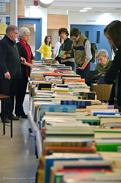 La foire du livre usagé géré par l'association se tient une fois aux deux ans et a généré, cette année, des profits de 2500 $ soit presque 800 $ de plus que précédemment. Comme on le sait, l'association offre à la fondation du cégep qui organise le Mérite étudiant, deux bourses de 250 $ à chaque année à même ces profits. Devant le succès des ventes, le comité administratif a décidé faire un pas de plus en offrant une contribution annuelle de 700 $ au fond d'urgence des étudiants en difficulté de notre institution. Cette contribution se fera jusqu'à ce que les profits de la foire du livre soient entièrement utilisés dans la communauté.