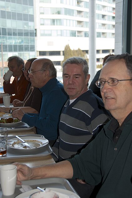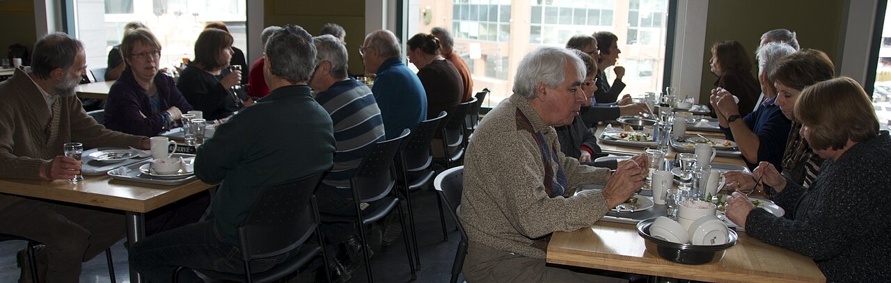 Le restaurant est maintenant administré par le 47e Parallèle, ce qui devrait nous sustenter agréablement. Le menu du jour complet coûte environ 15 $ (potage, plat chaud au choix : saumon, confit de canard ou autres, dessert). Il y a aussi des menus plus légers , à la carte : quiche, sandwichs, salade, etc...