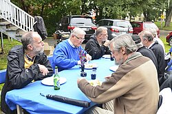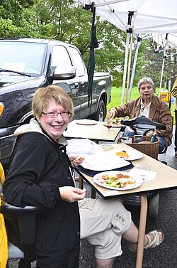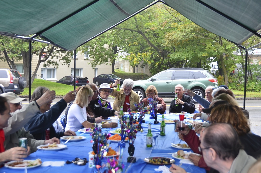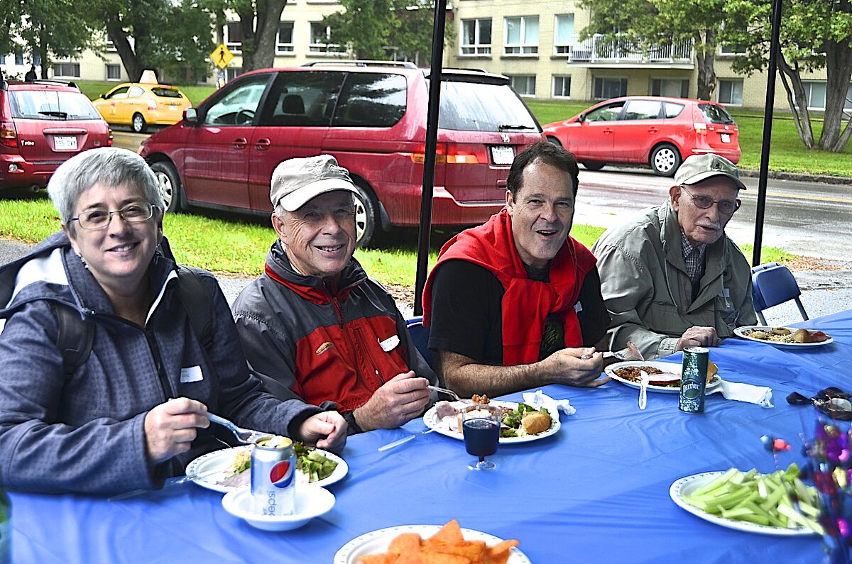 Nous étions 43 personnes mercredi dernier au party de la non-rentrée malgré une température quelque peu maussade. Nous avons pu profiter de la bonne bouffe « préparée » par Yvan et de l’agréable compagnie de nos collègues. Un gros merci à Yvan ROBITAILLE et à Jean BEAUDOIN pour les achats ainsi qu’à tous les collaborateurs sur place pour l’aide au montage et démontage des abris, au service du repas et au ramassage.