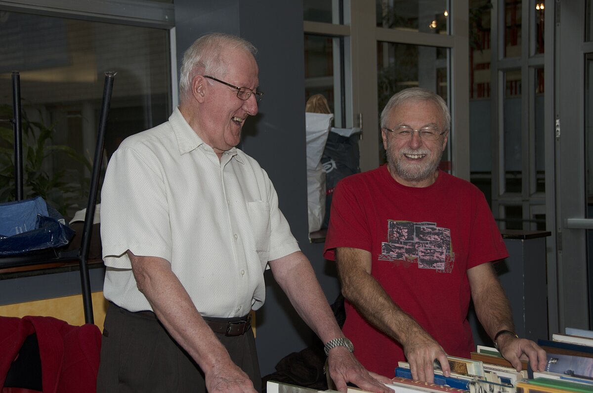 Renée a été retenue en dehors de la ville pour la période d’entraînement d’un nouveau chien guide. Heureusement, Michel CRÉPAULT et Jacques TREMBLAY ont pris la relève pour seconder Michel LEBEL dans la préparation des tables et l’horaire des bénévoles. En effet, 35 membres de l’Association ont participé à la vente de livres comme le démontre les photos.