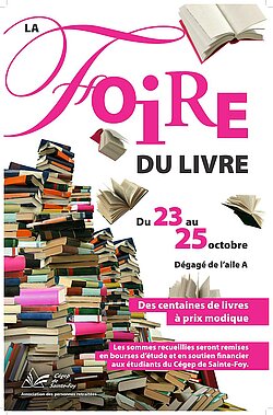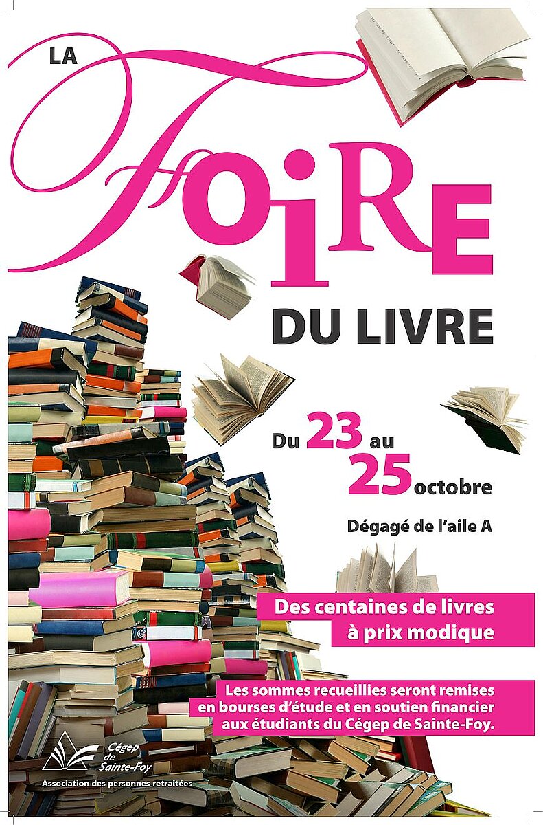 La foire du livre est gérée par l’Association et se tient une fois aux deux ans. Elle a généré, en 2011, des profits de 2 500 $. En 2013, les profits ont atteint 2 646,40 $. Comme on le sait, l’Association offre à la Fondation du Cégep, lors de la cérémonie de fin d’études, deux bourses de 350 $ à chaque année à même ces profits en plus d’offrir une contribution au fond de dépannage des étudiants en difficulté financière de notre institution. Cette contribution se fera jusqu’à ce que les profits de la foire du livre soient entièrement utilisés dans la communauté.