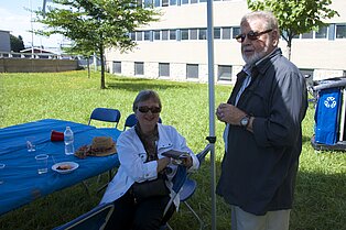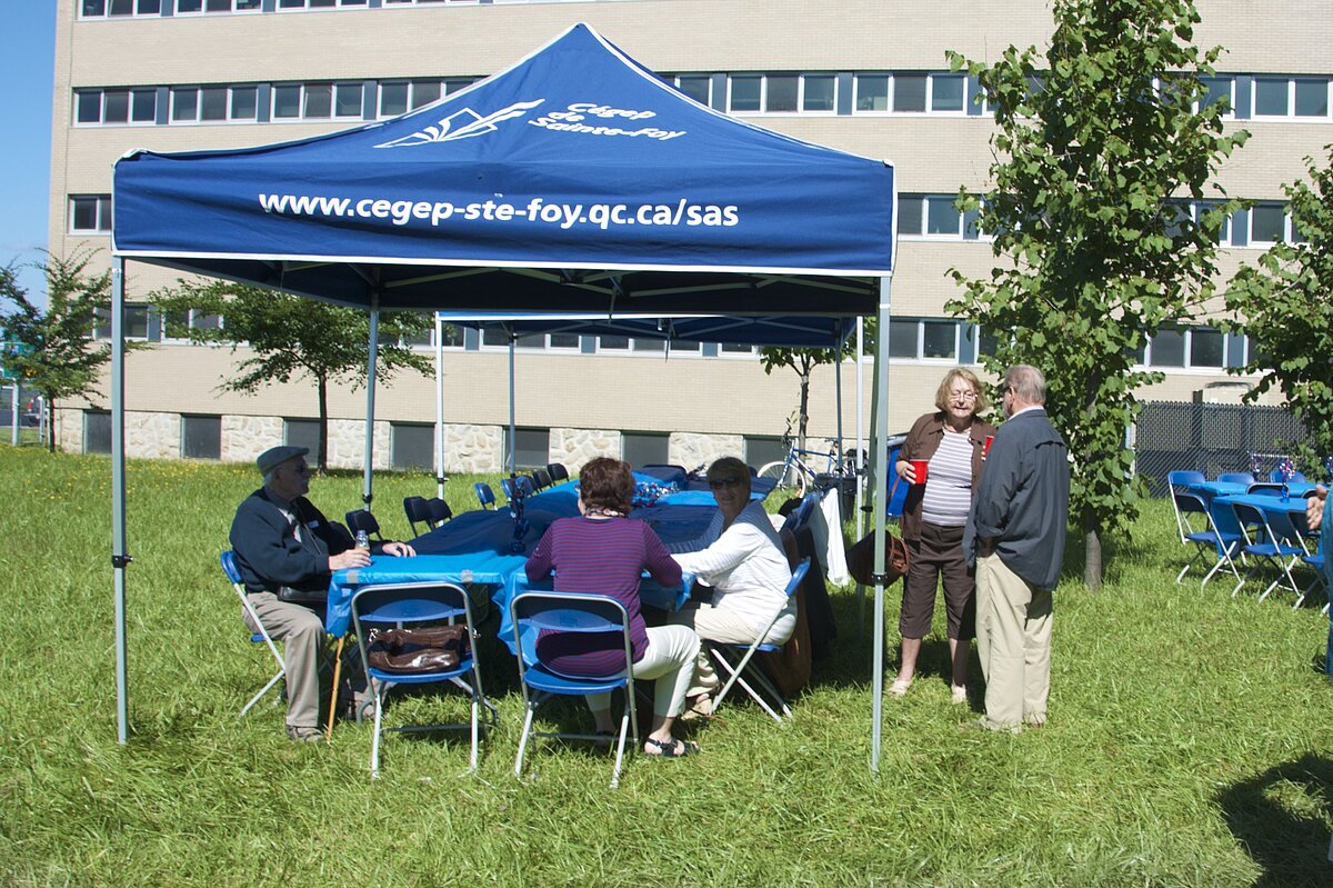 La Maison Bruneau, sur le chemin Ste-Foy étant fermée, la fête de la non-rentrée s'est tenue dans la cour intérieure du F (ancienne résidence des étudiants), espace de verdure entre l’édifice F et le boulevard Robert-Bourassa.
