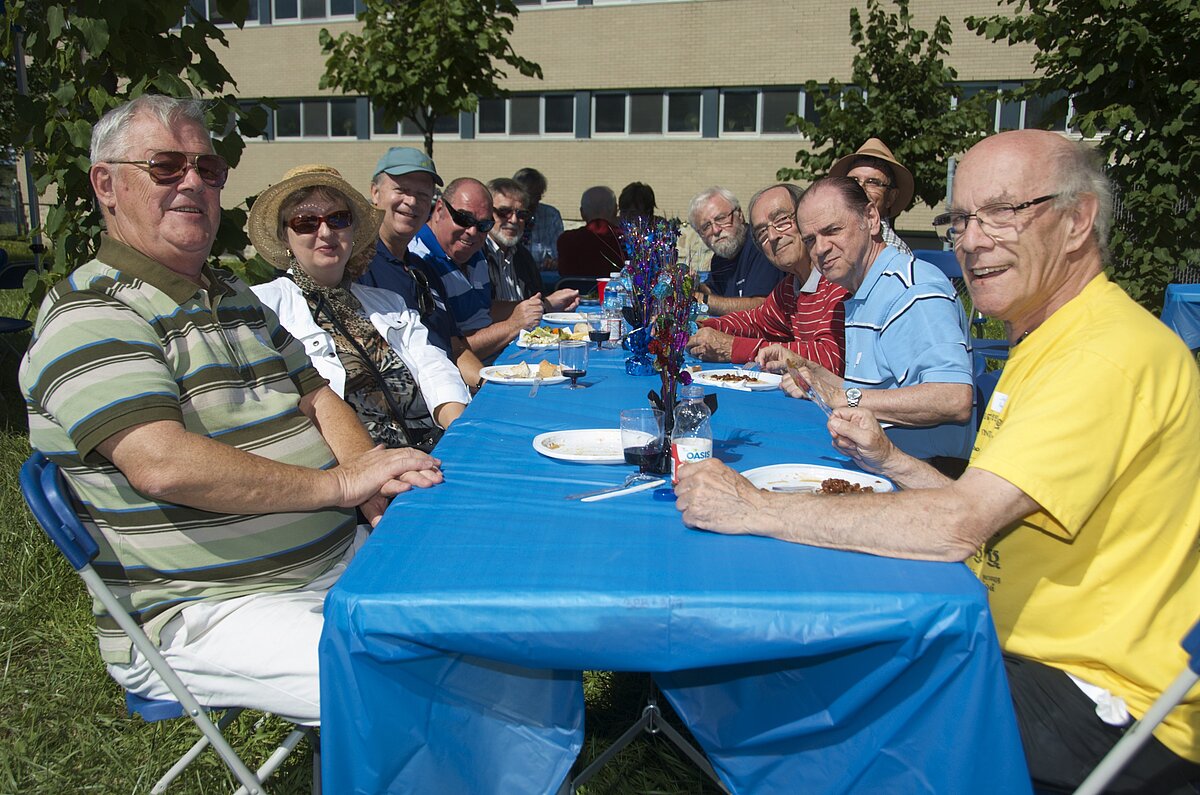 Quelle belle fête ! 47 membres de l’Association ont fraternisé sous un chaud soleil de septembre. Grâce à Yvan, le jambon était délicieux et les fèves au lard n’ont reçu que des compliments surtout arrosées avec le sirop d’érable fourni gracieusement par Raymond. Les salades, le pain et les gâteaux ont trouvé aussi des gourmets empressés. Le tout, arrosé de liquides euphorisants, a suscité une ambiance animée. Les deux pieds dans l’herbe, les personnes retraitées ont partagé leur plaisir d’être à la retraite.