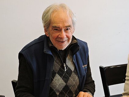 Après le déjeuner, nous avons écouté Luc interpréter une quinzaine de chansons françaises qui nous rejoignent malgré leur création d'une autre époque. Il a chanté Moustaki, Félix, Brel, Brassens, Béart, Mouloudji, Ferland, Trenet, Vigneault (un potpourri), Charlebois et Sylvain Lelièvre sans oublier Quand les hommes vivront d’amour de Raymond Lévesque. Créée dans les années 50, cette chanson résonne d’actualité. En effet, il est fort probable que nous serons morts quand les hommes vivront d’amour car l’orgueil et l’ambition sont toujours en chantier. Il a été chaleureusement applaudi pour un tel exercice vocal.